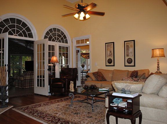 Beautiful lake views in Barrington Hall! Living room with fireplace, gorgeous hardwoods throughout main level living areas. Amazing master suite with private sitting area with lake views and 2nd gas fireplace, huge master bathroom with whirlpool tub and his/hers closets. Kitchen with granite counters and breakfast bar. Plantation shutters/blinds throughout. Enjoy lake views from Spacious sunroom all year. Large deck and separate grilling porch by Archadek; brick patio off sunroom. Beautifully landscaped backyard with stone walkways to lake. 750 SF unfinished basement/workshop.