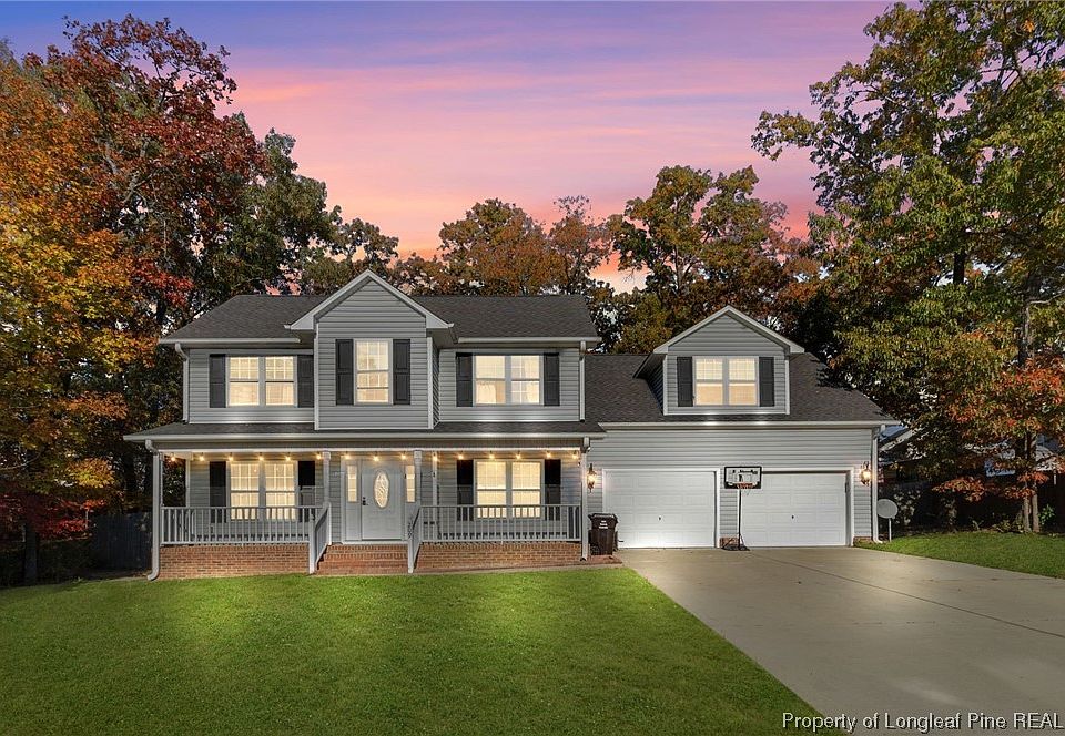 Beautiful Well-kept 4 bedroom 2.5 bathroom home located in the Overhills Creek Subdivision. This home features luxury vinyl plank flooring throughout the downstairs and upstairs. Enjoy the mornings and evenings on the covered front porch. Inside you have a formal dining room, kitchen (with view of living room), the living room, and half bath. You also have your laundry room off the kitchen coming from your two-car garage. At the top of the stairs you'll find the large owner suite with a corner for an office, the owners bathroom with separate shower, garden tub, and walk-in closet. You also have two other bedrooms, with the second upstairs bathroom. At the end of the hall is the Bonus room with two oversized closets (bonus is 4th bedroom) and it's own office/closed loft off the side of the bonus room. Large patio overlook the fully fenced back yard.
