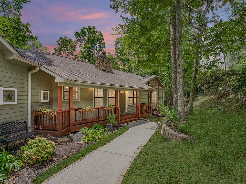Are you ready to live the Lake Life in Lake Arrowhead? This gorgeous property is located on Chickasaw Lake with a large private lot, flat driveway, two car garage, lake access, and offers ranch style living on the main with a finished terrace level. Enter on the main for access to your main living area including the living room, updated kitchen, dining room, and master suite. The living room offers loads of natural light with gorgeous views of the water, a wood beamed ceiling, and a floor to ceiling stone fireplace perfect for those cozy nights in. The kitchen features granite countertops, updated appliances, a breakfast bar, and pantry. Open concept dining room flows seamlessly from the kitchen to the living room with stunning lake views, room to entertain and direct access to the back deck. Enjoy your master on the main with a spacious room with lovely views, trey ceiling, oversized walk in closet, and en suite master bath. The master bath offers a separate shower and soaking tub, linen closet, and vanity. Head down to the terrace level where you will find two additional bedrooms with a shared full bath, a generous space for a secondary family room or media room, and a bonus area with built ins perfect for a home office or study. The terrace level is complete with a wet bar and walk out access to a covered, screened in patio. You will enjoy tranquil views from all angles of this lovely home! Whether you are sitting on the covered rocking chair front porch, unwinding on the screened in patio, or enjoying the oversized back deck. This home is truly a retreat and perfect for entertaining friends and family. Enjoy a walk out dock from your deck with deep water access for swimming, fishing, or yet another wonderful place to have a cup of coffee and take in the views. You will also enjoy all that Lake Arrowhead has to offer with five star amenities including two pools, marina, club house, golf course, restaurant, walking trails, parks, tennis, and so much more!