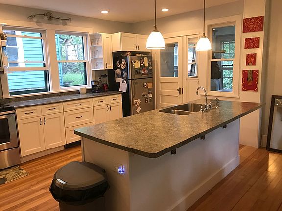 This house has handsome vinyl siding. New electric service from the pole on the street, New electric sockets, switches and lighting everywhere. New oil furnace. The new kitchen has all new appliances. The bathroom is so lovely. The house has many newly sanded maple floors - Parking for 3+ vehicles. It has small, private, and manageable yard. It has been painted throughout. The small front porch and yard are beautiful.