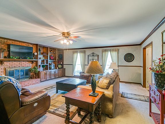 Over 2000 sq ft of living space all on one level. All brick well, maintained with mature trees on a level (almost) one acre lot. Updated lighting and flooring throughout. A very large living room with a gas log fireplace and built in shelves with cabinets too. The backyard is private with a farm field behind the property line. For even more privacy, the screened in porch is 24x14 and a great place to relax. Seller will need 7 days after closing to vacate.