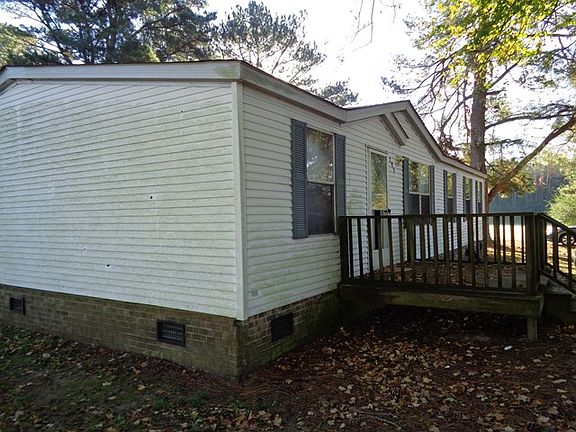 This 3 Bed/2 Bath Manufactured Home on a brick foundation features an open living room, dining room, kitchen combo and a laundry room. The master bedroom has a private bath and the other two bedrooms share a 2nd bah. Located on a corner lot in the small town of Kelford, NC. Outside is a small storage shed and a side handicap ramp. Central Heat/Air.