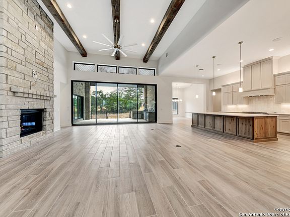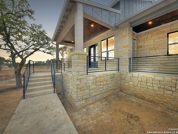 Ask about special 4.99% interest rate financing! Now under construction with completion scheduled for December 2025, this luxury home is being built by San Antonio's most trusted name in homebuilding, Sitterle Homes. Set on just over an acre in the exclusive enclave of Stone Creek Ranch in Fair Oaks Ranch, and located within highly rated Boerne ISD, this home offers exceptional craftsmanship, thoughtful design, and a quiet Hill Country setting. The floor plan is the same award-winning layout featured in the 2024 Parade of Homes and was designed to deliver both elegance and everyday functionality. All bedrooms feature ensuite baths, including a private guest suite with its own separate entrance. The chef's kitchen offers a 10-foot island, quartzite countertops, a walk-in pantry, and a separate back kitchen for added prep and storage space. The great room includes a fireplace, wood-wrapped beams, 16-foot ceilings, and sliding glass doors that open to a vaulted outdoor living area with a built-in kitchen. Additional features include a game room with bar and sliders to the patio, a wine niche with floor-to-ceiling stone accent, floating shelves, and two 6-foot wine refrigerators. Vaulted ceilings enhance the guest bedrooms, study, and outdoor patio. The primary suite includes a built-in coffee bar for added comfort and luxury. Interior selections feature Michael Edwards custom cabinetry throughout, all with soft-close doors and drawers, bronze-framed windows, a double-door entry, and stylish finishes. Flooring includes wood-look tile in the main living areas and plush carpet in the bedrooms. Located near the neighborhood amenities center with pool, lazy river, and clubhouse, this home is an ideal blend of luxury and lifestyle in one of Fair Oaks Ranch's most desirable communities.