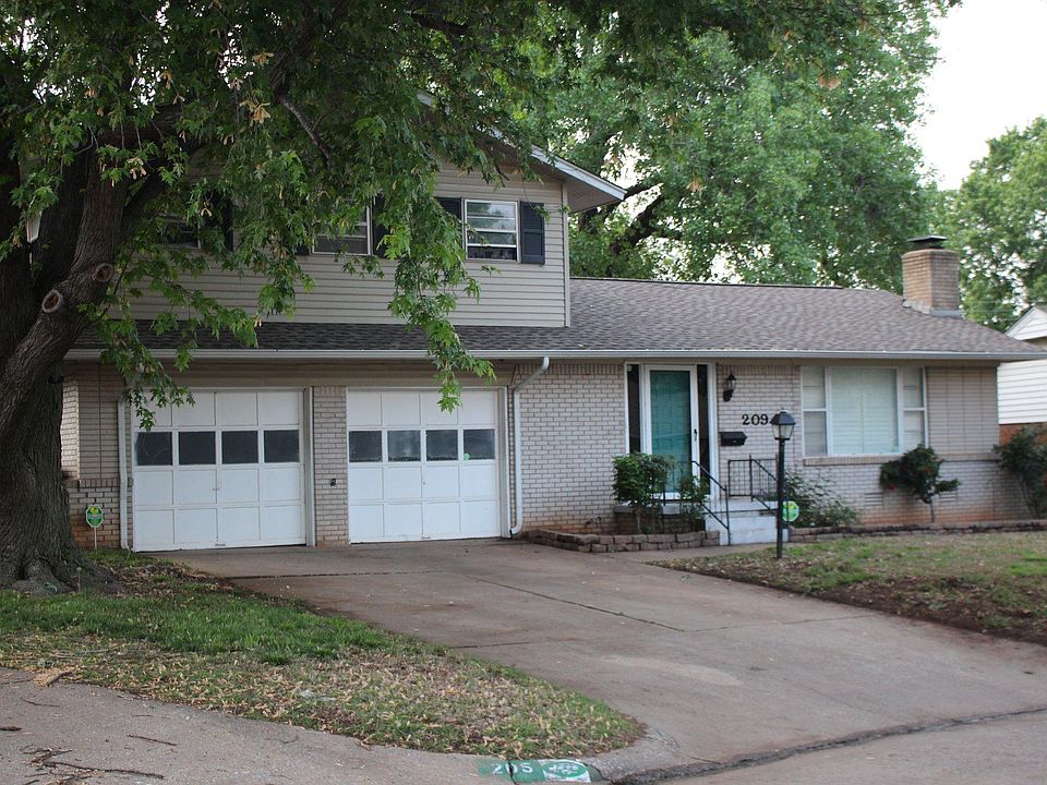 Just a few minutes from Tinker AFB or downtown OKC! Well-established neighborhood. Large back yard with privacy fence. Ample shading. 2 car garage. Washer and Dryer hook-ups. Central heat and air. Secure storage building. Hardwood and tile throughout. Marble countertops. 2 skylights. Large sunroom with French doors leading to backyard/deck access with extra closet space could serve as master bedroom . Large master bedroom upstairs with 2 closets. The two smaller bedrooms upstairs are combined to make an even larger bedroom than the master. If your looking for large living areas and bedrooms this is the place for you. Washer, dryer, refrigerator not included. Text preferred when contacting for a viewing! If you are having issues scheduling a viewing please call or text to schedule. Tenant responsible for lawn care, utilities and renter's insurance. No smoking indoors or in garage.