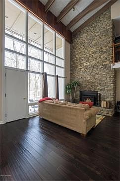 Welcome home to 209 Rebel Dr in beautiful historic Pewee Valley, KY. This unique home is not your average cookie cutter subdivision home. This pristine, move in ready home has lots of unique, architectural features that make it stand out among other homes. The quiet, wooded neighborhood welcomes you into this quaint community. This home has been well maintained and has a W-I-D-E O-P-E-N floor plan and a wall of floor to ceiling windows that overlook the wooded .77 acre, private back yard. The large kitchen has been well upgraded with custom cabinetry, granite counter tops and sleek appliances. Radiant heated floors for the main level and garage with individual room controls/thermostats that is sure to please on these cold winter days.