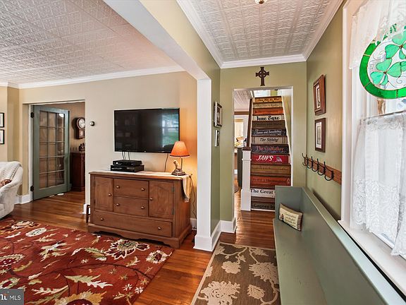 Charming and character filled, this delightful 1917 home has been thoughtfully and fully renovated, blending timeless appeal and vintage character with modern comforts. Nestled on a spacious 1/3-acre lot, the property boasts beautifully restored features both indoors and outdoors, ideal for everyday living and entertainment. One can’t help admire the over 1800 square feet on 2 finished levels complete with a separate outbuilding (use as an office, studio, guest cottage, entertainment space, exercise/yoga studio, etc.) w/a screen porch as well as a separate storage shed adding both functionality and character to the partially fenced rear yard. With 2 bedrooms, 1 full bathroom, and 1 half bathroom, this home’s fully renovated custom features are fabulous! Marvelous main level features include a wraparound front porch with Victorian corbels. Stained glass address window above front door. The welcoming foyer with Ceilume ceiling tiles, vintage-inspired lighting, crown molding, & refinished hardwood floors is the perfect entry. Refinished hardwood floors, Ceilume ceiling tiles, and crown molding continue to the lovely living room with bay window, custom window blinds, and custom paint. Refinished hardwood floors, Ceilume ceiling tiles, & crown molding continue to the dining room with built-in China cabinet, built-in shelving, and propane gas fireplace. The breakfast bar from dining room opens to the fully renovated kitchen complete with custom cabinetry, propane gas cooking, farm sink, vintage inspired lighting, solid surface counter, custom tile backsplash, & center island for additional prep space. Wood floors and custom paint continue to the mudroom with French door to side porch, cork-board message center, vintage inspired lighting, and built-in storage. The half bath offers tile floor, pedestal sink, and custom paint. Step down from the kitchen to the spectacular sunroom with LVP floors, ceiling fan, recessed lights, custom paint, ductless split system with auto temp control feature, and French doors to rear yard. The Lovely upper-level features…Hardwoods stairs with “library inspired” treads continue to the upper-level hallway. The primary bedroom with new carpeting, custom paint, crown and chair molding, Ceilume tile ceiling, wall sconces, walk-in closet, and vintage-inspired lighting is a tranquil retreat. The light and bright laundry room with washer & dryer, shelving, built-in storage, and clothes drying bar is conveniently located. The spacious full bath with vintage-inspired ceramic tile floor, crown and chair molding, beadboard paneling, Ceilume tile ceiling, custom paint, separate shower with custom tile, restored claw-foot tub, single-sink vanity with quartzite counter, and wall sconces is the perfect blend of vintage charm combined with modern touches. The 2nd bedroom offers wood floors, vintage-inspired lighting, recessed lights, and wonderful natural light. Extraordinary exterior features include...a 1/3-acre lot with SPECTACULAR outbuilding with screen porch (with electric)…includes an old feeding trough that's been converted to a cooler ...and large storage closet. There's an additional garden shed for storage, too. The home is perfectly situated in close proximity to the historic town of Berryville as well as to commuter routes Rt. 7, Rt. 340, and I81. The quaint town nestled in the picturesque Shenandoah Valley is the largest town in Clarke County and features a charming downtown area with many of the buildings dating back to the Civil War era. Enjoy many independent businesses including shops and restaurants. Award winning wineries, festivals, and events…farm to table restaurants…and entertainment including the Barns of Rose Hill which is a performing arts venue and community center. You’ll never lack for something fun to do! Air BnB potential (buyer due diligence with Town of Berryville), primary residence, or weekend getaway awaits! There truly is no place like home:-)