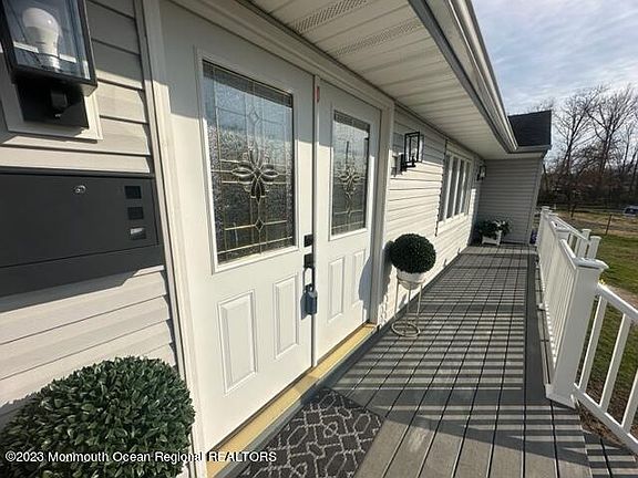 House sitting on fenced-in double lot with shed in the back, Trex front porch and side deck off the sliders in the kitchen.
