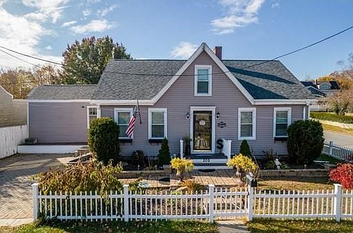 Welcome home! Charming Cape Style home that is truly move in ready. This property features a large, eat in kitchen with vaulted ceilings, a large open concept living and dining room, full bath, as well as master bedroom and full en-suite bathroom all conveniently located on the main level. Bonus: Laundry is located right off of the kitchen on the main floor as well. The second floor features another large bedroom, and an additional office. This home exudes charm and pride of ownership with custom stone work along the front walkway into the home and beautiful driveway with all new pavers. The roof is only about a year old! The exterior also includes a front and rear deck made of composite decking and vinyl railings. The yard is very large and entirely fenced in! You will not want to miss out on this beautiful property in a great North End New Bedford Location! First showings at Open House, no exceptions.