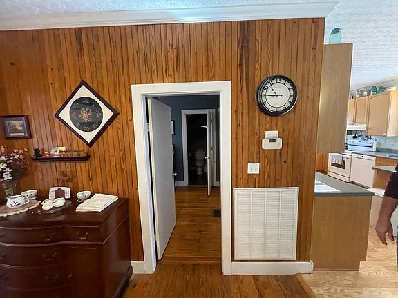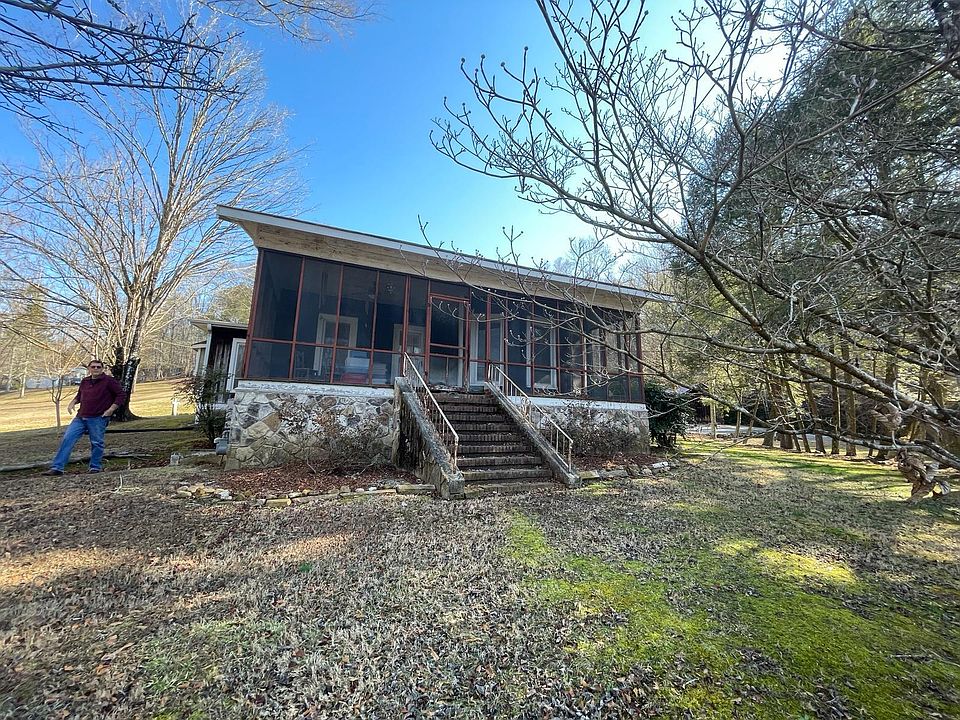 Home for sale in 'as is' condition. Included are a detached two-car garage, a one-car carport, and an outdoor 'arbor' adorned with kiwi vines. Additionally, the property features a spacious 20X44 barn, a 20X15 office building, and a charming 20X22 two-story structure. There are four water sources available: city water, a refreshing mountain spring with a convenient spigot, a well located on the property, and a serene creek running across the front. The front property lines extend across the street and into the creek.