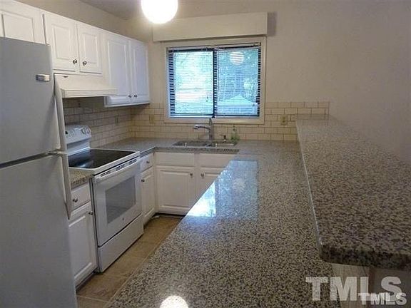 Available July 1st, 2023. Recently remodeled 2 bedroom, 1 bath unit in duplex on quiet street convenient to Glen Lennox, UNC, Meadowmont, and several of the town's free bus lines. Unit has new vaulted ceilings, granite countertops and new laminate flooring with new tile in kitchen and bath. Peaceful setting on Rogerson Drive abutting the Chapel Hill Country Club golf course. Tenant responsible for water, electric, and telecom (cable/telephone)