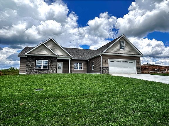 Welcome home to this stunning new construction! Easy one level living at its finest with a spacious open floor plan! Close to everything but far enough away to enjoy country living in the area’s newest community – Diamond Estates. The grand entryway leads to the spacious main living area that offers a tray ceiling, custom kitchen with granite countertops & tons of storage. This Design offers a HUGE Finished Bonus Room that can be an office, 4th bedroom w/plumbing available for a 3rd bath, or just extra storage! The home offers a private master suite with luxurious master bath and Spacious walk-in Closets. Enjoy the peaceful country views from every room! Outdoors enjoy the community nature trails to Dunlap Lake. Nothing left to do but move in!