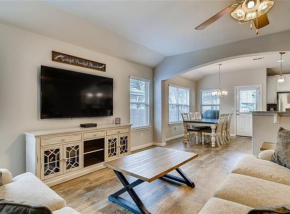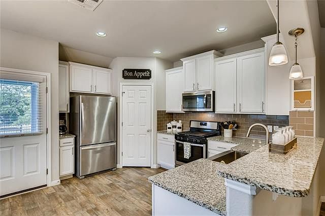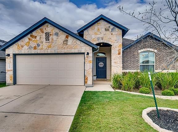 Beautiful Leander home, almost new and no neighbor behind! 3 bed + 4th bedroom/office option. Enter into an open layout with the optional 4th bedroom/office in the front of home. Warm and modern wood-like flooring throughout. The kitchen includes white cabinets, granite counter, modern subway tile backspash, and stainless appliances. Covered patio. Ability to add privacy fence or keep open with wrought iron. *Special financing available! $1000 paint credit.