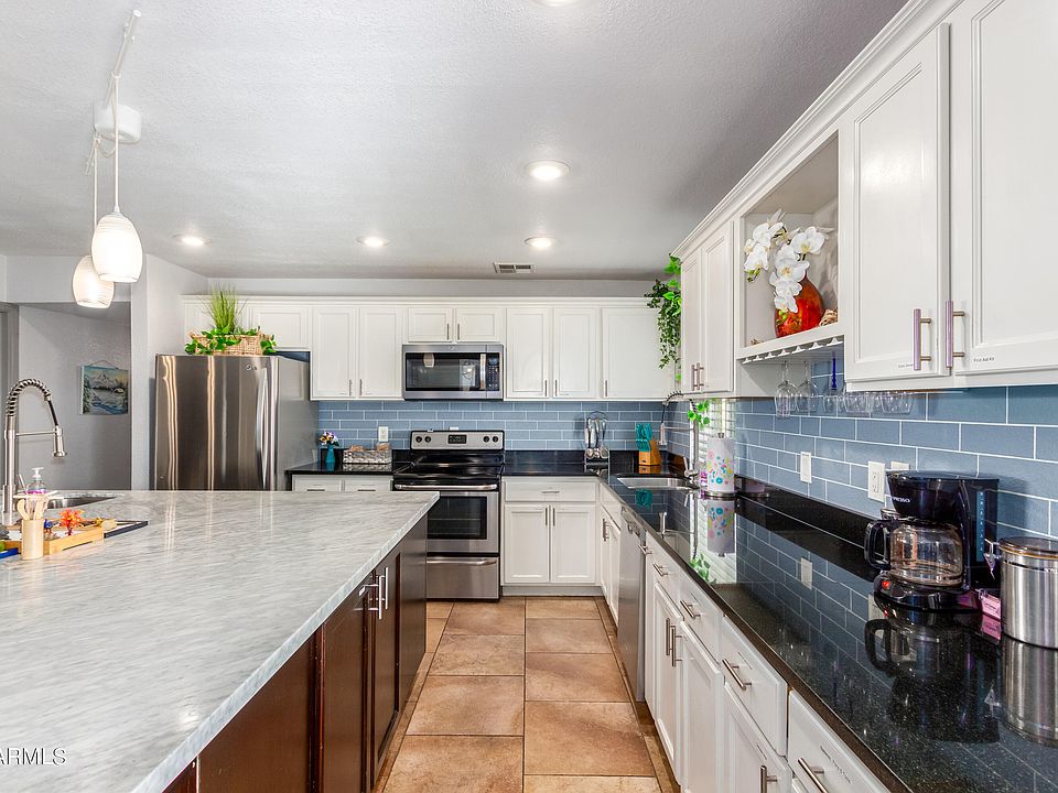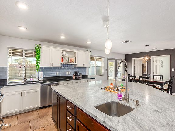 This beautiful Zen inspired, open-concept home features 4 beds, 2 baths and a large yard, just steps away from a newly updated park. Once inside you'll be greeted by a bright, open living space leading to the stunning, renovated Chef's kitchen with new stainless appliances, 2 sinks and a massive white and gray marbled granite island leaving plenty of space for entertaining! Perfect floorplan features Primary Bedroom with attached bathroom and double vanities with upgraded walk-in shower. Upgraded French doors lead you outside to a covered patio, large grass area big enough for pool, fire pit, & shed. New A/C motor, no HOA, all exterior windows resealed, along with award-winning Chandler schools and million dollar updated park just steps away. Dream big and make this your home today!