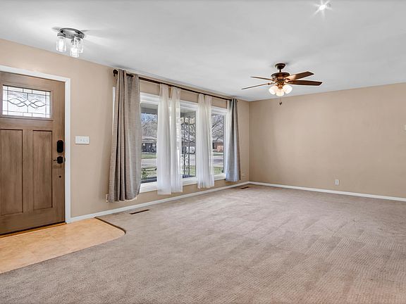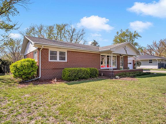 If you are looking for a house in Hesston in an established neighborhood, this may be it. This brick ranch home has 1578 Sq Ft on the main floor with another 1000 sq ft in the basement. Lots of living space which includes large living room, dining and kitchen (open plan) with large picture windows facing east for lots of daylight to brighten up your living space. The covered front porch has a large planter for your favorite flowers and has room for comfortable chairs and small table to enjoy your morning coffee and a ceiling fan. Off of the dining room it has a sun porch which could be used as an additional dining room, children's play room or just a place to kick up your feet and relax and you enjoy the view to the treed back yard and water feature. The house has undergone a lot of updates including baths, kitchen (quartz countertops, new sink, fixtures and sun tunnel), r/o system, laundry and the basement. It is ready to make your own. The backyard has a play structure and a second garage for at least 1 car and a golf cart, or if a two car garage door is installed, one could add a second car. Behind the one car attached garage is space for your shop and storage. It is ease to get to schools, college, parks, and the Aquatic Center as well as a dog park. The downtown is only a few blocks and can be walked or biked.
