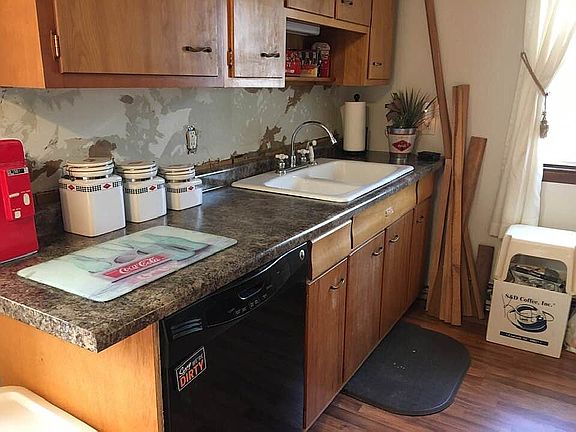 Affordable home offering 2 spacious bedrooms, 1 bath and first floor laundry. This home features a relaxing enclosed porch, a spacious living room and eat-in kitchen with stove. The nice corner lot features a 2 car garage with concrete floor and wood stove.