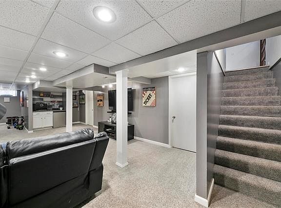 - RoomBasementFeatures: Full, Bathroom in LL, Rec/Family Area, Sump Pit/Pump, 8 ft + pour