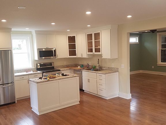 Incredible brand new modern house in an old shell.. house has been rebuilt after a fire in 2017. The "new" house features 3 bedrooms upstairs all with custom closets, hardwood floors, ceiling fans and a generous custom bath with custom tiled shower and tub, tiled floors and a large double sink vanity. The main living space downstairs is an open concept with hardwood floors making up the living, dining and kitchen areas.. Gas fireplace and salvaged chestnut stairs, door and mantle makes it super cozy.. Kitchen is custom built with pull out pantry, corner and trash pull outs, a large island and plenty of cabinets and drawers. All the appliances are brand new top of the line LG.. The rear porch addition of the house has laundry and mud room on one half and the other half of the rear porch is a smaller room with another full bath. . Exposed original siding add warmth to these spaces.. The house is super well insulated and features a high efficiency forced air condensing gas furnace with central AC on top. it also has gas on demand hot water heat.. so heating and cooling cost will be very low. All the lighting is very well thought out and generous.. LED disk lights and most areas, including bedrooms, have dimmers. Attic and basement are both clean and dry and good for storage and shop space. Back yard has large garden shed and is surrounded by hedges and a big garage on rear of property making it private and cozy.. Serious inquiries only please.. All utilities in addition to lease.