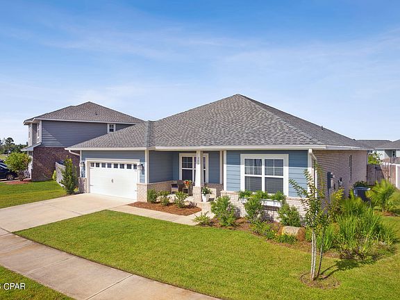 CURRENTLY UNDER CONTRACT, SELLER WILL CONSIDER BACKUP OFFERS. This well constructed Adams home is just 3 years old and has beautiful, unobstructed views of the bay from your front porch and catch and release fishing in the pond behind the home. Enjoy beautiful sunsets from your front porch. There is access to launch a kayak or canoe in the water just across the street from your front door. There is also an option available only to property owners in this subdivision to purchase waterfront property just down the street from this home for only $45,000. The purchaser of this additional property is allowed to build a boat ramp, dock, and boat house on the property and has full access to the water. The neighborhood has sidewalks, green spaces, community pool and underground utilities. This very friendly community is close to TAFB and walking distance to North Bay Haven Charter School. The very desirable open floor plan of this home has split bedrooms and a really nice master bath with walk-in closet. Granite countertops in the kitchen and baths, stainless appliances, upgraded flooring throughout and a large covered back porch with a swing. Irrigation system uses water runoff so water your lawn with free water. No flood insurance and home owners' insurance is less than $1000.00. VA assumable loan at 2.875% interest for approx $200,000 for 27 years with VA approval.