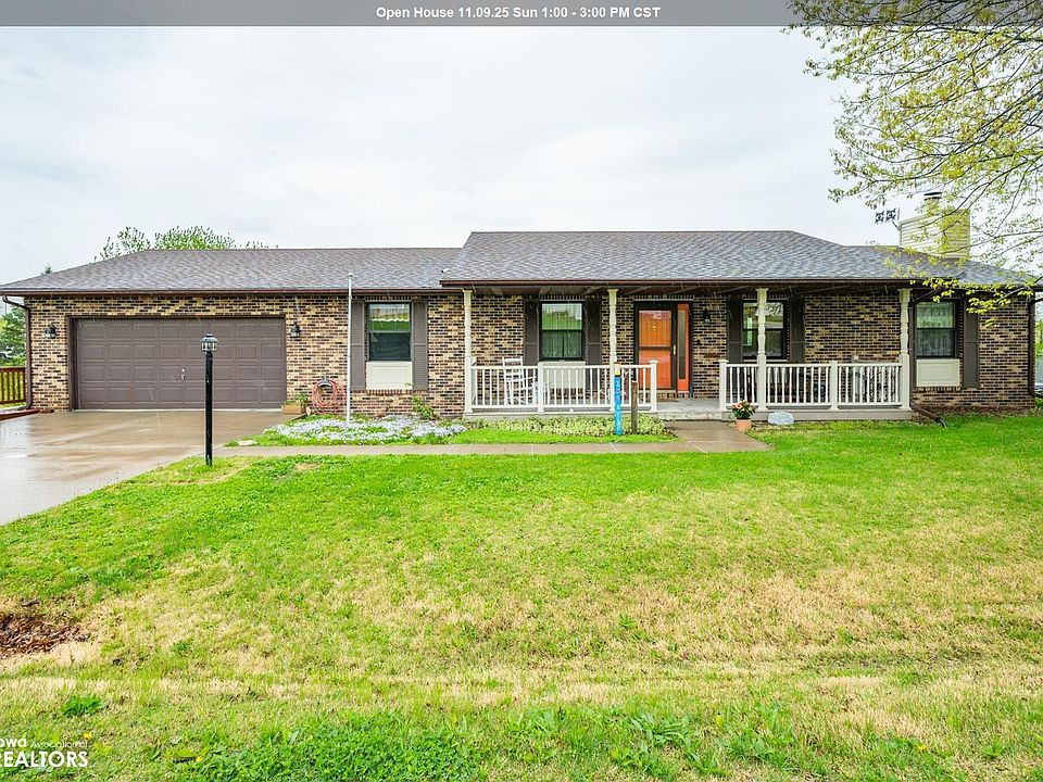 Discover the perfect blend of small town charm and modern updates in this beautifully maintained, move-in ready, 3 bedroom, 2 bath walkout brick ranch in Lacona, IA. Step inside to an inviting open concept layout that seamlessly connects the kitchen, dining area, and living room- ideal for hosting family and friends. The updated kitchen is a true highlight, featuring elegant quartzite countertops, a center island, new appliances, and extra storage with two pantries conveniently located in the mudroom, with 3 bedrooms, an updated full bath with a relaxing jacuzzi tub and shower all on the main floor. Enjoy outdoor living on two newly updated decks, front and back, offering peaceful spaces to unwind and take in the spacious 0.70 acre (3 city lots) in town yard. The backyard is a serene retreat with multiple fruit trees (Cherry, apple, peach and apricot), a garden spot, fire pit, and a quaint bridge crossing a small creek. The finished walkout lower level adds valuable living space, complete with a kitchenette, and updated 3/4 bath, a non-conforming 4th bedroom, and a cozy wood-burning fireplace- perfect for fall/winter evenings. Step right out to a large covered patio, ideal for entertaining or enjoying a quiet cup of coffee. Additional upgrades include a newer on-demand hot water heater, a radon mitigation system, and a reverse osmosis water filtration system. The home has been pre-inspected, offering peace of mind to the next owners.