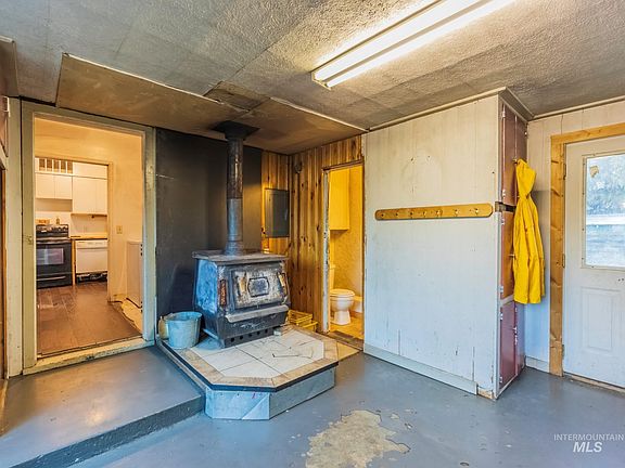 This home is situated on the south side of town and has three bedrooms, 2 bathrooms and a two car garage, sitting on a 9700 sq ft lot. Stay heated with the woodstove off the laundry/ pantry room or the Electric Furnace is located in bedroom 2 closet and will heat the entire house year round. Vinyl windows were replace in 2009ish. Backyard has a storage shed with sections fenced for privacy. Lots of room for a garden here. Dont wait!!!! Virtual Walkthrough with multiple exterior 360 photos.