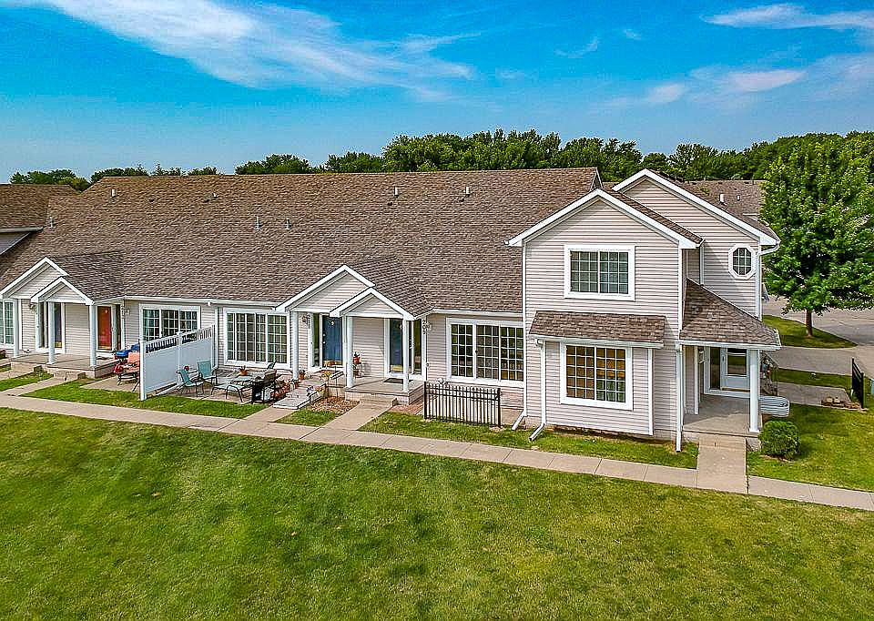 It's hard to find townhomes like this one! You'll love this 2-story home in Grimes with 2 bedrooms, 2 1/2 baths, a 2-car garage and a full basement. The location is fabulous, with a beautiful view of a large pond (with fish). When you enter the home you'll discover the main living area that's wide open and includes the living room, dining area and kitchen, all with beautiful new wood laminate floors. The vaulted ceiling and a large bank of windows add to the feeling of spaciousness. The living room includes a corner gas-log fireplace. There's also a sliding door to a patio that overlooks the pond. It provides privacy most townhomes like this don't share and is perfect for grilling and all of your outdoor entertainment needs. The main level has plenty of room for a dining table and you'll appreciate the convenient peninsula-style breakfast bar. The stove, microwave, fridge (not pictured) and dishwasher are included. In addition to ample cupboard space, there's also a nice-sized pantry. This level also includes a half bath. You'll find the master bedroom on the upper level. It features an en-suite bathroom with a step-in shower and a large walk-in closet. There's an additional bedroom and full bath on this floor. The laundry is also conveniently located on the upper level. There is an unfinished basement with an egress window which will allow for another large bedroom and/or an additional 450+ square feet of finished living area. There is brand new, never lived on laminate wood flooring on the main floor and brand new, never lived on carpet upstairs. Both include warranties. The air conditioner was replaced with a brand new unit in June of 2017, and also has a warranty. Every current finished living area has been freshly painted. The oversized 2 car attached garage will fit 2 large vehicles comfortably and still provide plenty of space for storage. Well managed association with reasonable dues of $150/month. New roof in 2017. Note: there has been oak quarter round to accompany the trim for the laminate hard wood flooring on the main floor that has been ordered and will be professionally installed. This home is move-in ready. With this quality, location and price, you need to act fast. Free real estate attorney services available to potential buyers. Call today to schedule a showing. IF INTERESTED, PLEASE CALL or TEXT - Erik Schultz a (515)556-4610 or EMAIL at eriklschultz@yahoo.com.