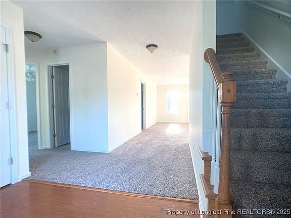 Great move in ready home in the Hollies of West Gate! This home boasts a Freshly Painted Interior & Brand-New Carpet Installed throughout the home. Nice size Living Room with access to backyard patio. Kitchen includes a large eat in area. Master suite is located downstairs with 2 extra bedrooms and hall bath. Upstairs features a separate living space that includes 1 large bonus loft room, full bath, and 4th bedroom. Enjoy outdoor entertaining at its best with a wide open spacious yard fully fenced. Neighborhood amenities include: Pool, Clubhouse, and Playground! Conveniently located to shopping/dining and an easy commute to Fort Bragg, Fayetteville, and Pinehurst.