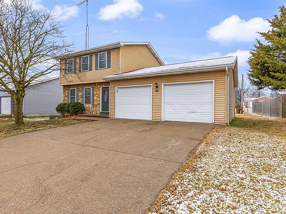 Welcome to this move-in ready home in a well established neighborhood conveniently located near schools, hospitals, shopping, and historic downtown Ste. Genevieve. This 2-story house is located on an oversized, level lot with an oversized garage and shed that's perfect for the hobbyist. The roof is nearly brand new, having just been replaced November 2024. Main floor living area consists of living room, kitchen, pantry, separate dining area with sliding doors to concrete patio, laundry and half bath. Upstairs leads to all 3 bedrooms including the master suite with a full bathroom. The basement offers a wet bar, half bath, storage room and space to create your very own movie room. Come enjoy this wonderful home with plenty of room to entertain and spread out to enjoy the spacious yard. Call to schedule your showing today!