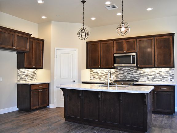 Stunning College Heights home with paid solar! This 2018 home features, a split floor plant, 3 bedrooms, 2 full bathrooms, tile flooring throughout, carpet in the bedrooms, spacious kitchen island with quartz counter tops consistently throughout the home, arched door ways, rustic modernized fixtures, water softener system, indoor laundry leading to a fully finished 3 car insulated garage that is also wired for electric vehicle charging station, RV access, 2x6 exterior walls, CAT 6 drops throughout the home, master bedroom and garage are wired for surround sound, 220VAC for a future spa, tankless water heater plus a view of the mountains from the fully landscaped backyard!