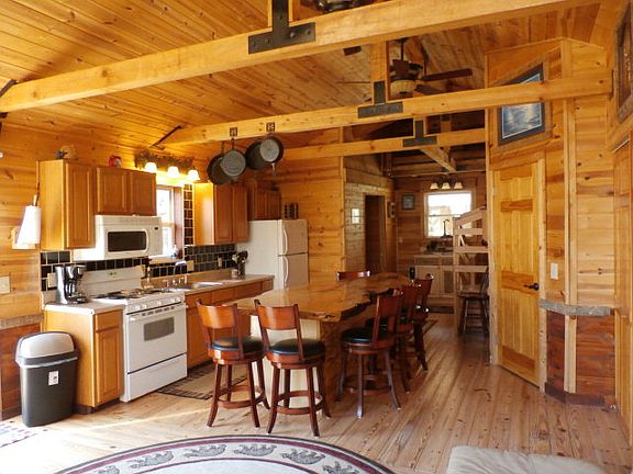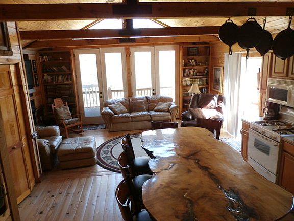 Wonderful mountain retreat, rustic comfortable and cozy. This home can be a vacation rental property when you are away. Large family, dining/kitchen area. 2 bedrooms on the main level with 2 bedrooms up. Lots of outdoor living space, decks, covered patio and large yard. 2 fire pits one being under shelter. Beautiful wood features inside including a solid wood slab island top. Nice views from property, very private. Many great and unique features. You will want to see this one. Septic permit for 3 bedroom house.
