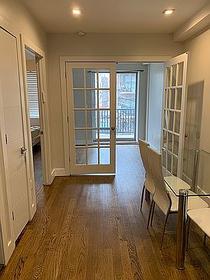 NO BROKER FEE This NO FEE 2 bedroom apartment is located in a modern elevator building. The apartment features: -1 queen size bedroom with closet -1 full size bedroom with the double panel french doors -private apartment balcony -in unit full size washer and dryer -central heat/air system -video intercom system -quaint living room space Building: -roof top access -NO PETS ALLOWED -Guarantors allowed *THE UNIT CAN BE USED AS A SMALL 2 BEDROOM OR A LARGER 1 BEDROOM. THE SMALLER ROOM WITH THE FRENCH DOORS IS CONSIDERED THE 2ND BEDROOM*