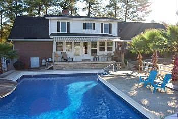 Single Family Home for sale by owner in Warner Robins, GA 31088. Beautiful all brick home with seperate entrance Office/Sunroom. Everything is practically new. Designer colors throughout. Stainless Steel appliances. Real wood floors. Many new features including: custom cabinetry with granite countertops and breakfast bar, new windows and doors throughout, crown molding, pool liner, bedroom carpets, plantation blinds throughout...too many new items to mention. Roof replaced in 2006. Exceptional garage. Quiet neighborhood. County taxes only! Three (3) living spaces (2 downstairs/1 upstairs) Master suite on main level with walk-in closet. Very large bedrooms. Large laundry room. 1 1/2 bathrooms on both levels. Tropical pool with sand and palm trees. Excellent entertainment home. Great for kids. Schedule appt. to see this beautiful home. For more information or pictures send request to: pamsmail2010@gmail.com