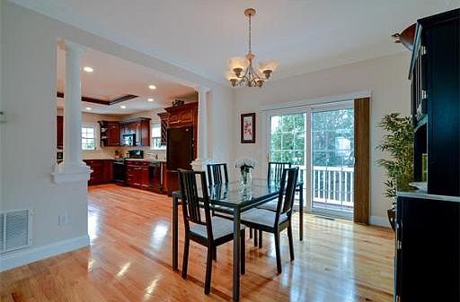 Contemporary & Classy - this 10 year young sun-drenched townhouse at the foot of "College Hill" is your chance to be part of the wonderful atmosphere of this well established neighborhood.This home features 3 finished levels of living,2 story foyer,spacious open floor plan w/lots of hardwoods,tray ceilings,dentil moulding & recessed lights.Bright Living/Dining room w/hardwood floors & slider to deck.Large eat-in kitchen has richly appointed cabinets,granite tops.A lg media room w/granite wet bar is the perfect entertaining spot just steps off the kitchen & main living area.Upstairs are 3 spacious bedrooms w/neutral Berber carpet.Master Suite has tray ceiling,huge walk-in closet & adjacent bath.2nd fl Laundry.Finished lower level offers additional space for gym/playroom/office & features a separate tiled area for storage.Beautiful brick walkway/granite steps.A great commuter location on beautiful tree-lined street,close to all conveniences.Easy access to Route 9 & lovely Cushing Park