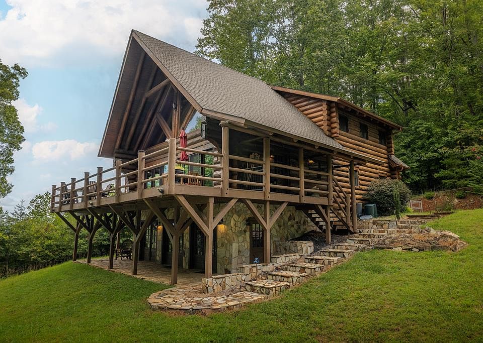 Fenced-in side yardBreathtaking year-round mountain viewsExposed beamsExpansive deckOpen loftFlagstone flooringLuxurious tile shower