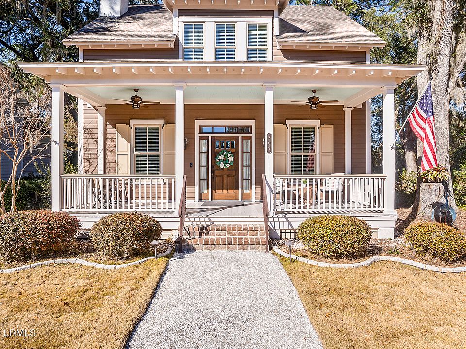 Step inside to discover 10-foot ceilings on the main level, creating an open and airy ambiance. The spacious primary suite on the first floor ensures convenience and privacy, while the second level boasts three additional bedrooms and a cozy sitting loft perfect for relaxing or working from home. The home's gourmet kitchen is a chef's dream, featuring granite countertops, stainless steel upgraded appliances. The house boasts a bright and airy atmosphere, with an open layout that feels fresh and inviting throughout. Outside, enjoy the Lowcountry charm with inviting porches, serene gardens, and a private patio ideal for entertaining or unwinding. Practicality meets style with a two-car garage, offering ample storage for vehicles and more. Pinckney Retreat Amenities include resort-style pool for refreshing swims, community dock with access for boating, fishing, or soaking in breathtaking waterfront views, nature trails for peaceful walks or invigorating jogs amid lush surroundings, and gated community providing security and tranquility. Pinckney Retreat blends the history and charm of the Lowcountry with luxurious, modern living. Don't miss this extraordinary opportunity to own a slice of Southern Living in one of Port Royal's most coveted neighborhoods. Nestled in a community that blends Lowcountry history with modern luxury, Pickney Retreat offers a lifestyle like no other. Schedule your private tour today and experience the beauty of 209 Sturdevant Drive firsthand!
