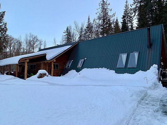 Aframe cabin with loft room (currently used as a bedroom) with a log addition that houses a master suit with walk in closet, office nook and a large mud/rec room. Established orchard has pear, apple, plum and cherry trees. 432 sq ft lofted garage with 432 square ft lean to