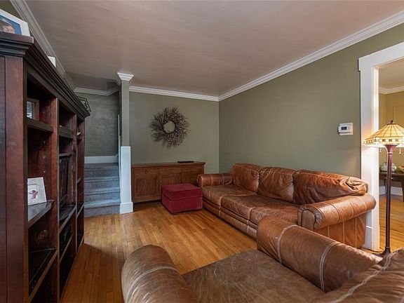 You will fall in love before you even walk in! Awesome front porch with rocker opens to a formal living room and dining room with hardwood floors, built-in bookshelves, and a gorgeous stained glass window! Spacious kitchen with updated cabinetry, granite countertops, stainless steel appliances, tile floors, and a half bath. There was a thoughtful back addition that adds a first floor laundry/pantry area along with a covered back porch that leads into the back foyer with extra closet space and room for backpacks and shoes. Upstairs is a surprising master bedroom suite with a large walk-in closet and large tiled soaker tub. The second bathroom has also been remodeled with ceramic tile, new cabinetry, and double sinks. There are three additional bedrooms as well as attic access through one of the bedroom closets to a finished attic! It's a cool spot for gaming or space to yourself. The basement also has a rec room area. In addition to the covered front porch and back porch, there is a backyard patio area with a fire pit. There's plenty of additional parking in the back, a storage shed, and impressive landscaping. All of this and just a short walk to restaurants, ice cream shops, schools, and parks. Tons of character!
