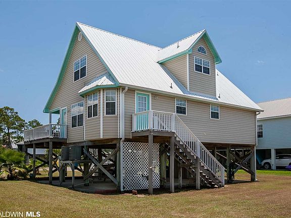 Welcome To Paradise on Little Lagoon. This Charming Two Story Raised Beach Cottage Is Located Just A Few Blocks From The White Sandy Beaches of Gulf Shores. Your Private Oasis Is Waiting. House Has Been Recently Remodeled. New Metal Roof, New Siding, All Stainless Steel Appliances, Granite Counter Countertops, Updated Cabinetry and Fixtures, Hardwood Flooring Throughout The Main Level and Recessed Lighting. Perfectly Situated On Large 80 X 172 Lot. Spacious Covered Patios Perfect for Outdoor Living and Entertaining. Relax, Unwind and Enjoy. Ample Parking. Don't Miss Your Opportunity to Own a Piece of Paradise. The Tranquility and Peacefulness Will Never Make You Want To Leave. Prime Location. Walking Distance and Minutes To The Beaches, Restaurants, Festivals, Shopping and More. Perfect For Beach Get-a-Way! 1/8 Ownership In The Vacant Waterfront Lot In Front Of The House. Furniture Negotiable.