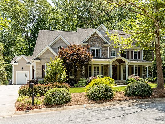 In POPULAR Sunset Ridge - A Golf, Tennis & Swim Community! WIDE .70 ACRE homesite on quiet street! Flagstone wrap prch w/bead-board barrel ceiling & rot-free ext (fiber cmt)! Screen prch, patio & deck to enjoy nature! Ext painted 2017! Newer HVACs! Solid design w/1st fl guest & office w/ French Doors, mud rm to keep organized & giant pantry! Master boasts his & her closets, FP & sitting rm w/built-ins. Expansive opn kit to 2-sty FR w/ stone FP. Private bath access 4 all BRs! WUA! Walk to schools & pools!
