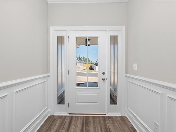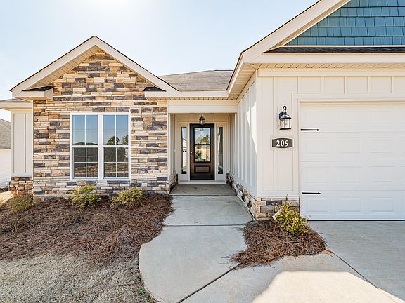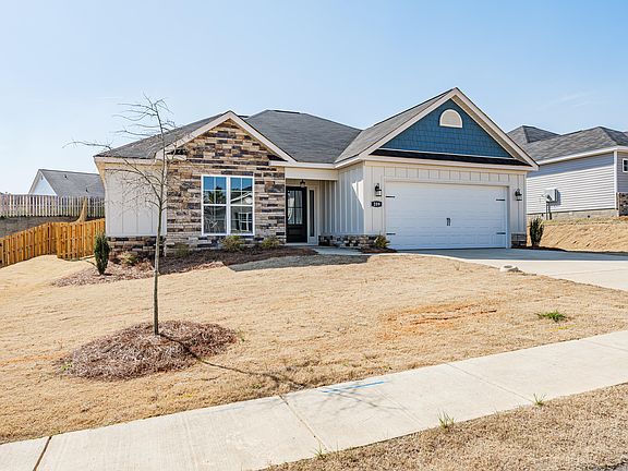 The ANDERSON plan, a super cute one level home with a split bedroom layout, walk in closets in all bedrooms and a spacious living area. The design elements start immediately before you even enter the home. The welcoming front exterior is crafted with a stone accent and board and batten style siding. At the front of the home, there are 2 bedrooms and a full bath. The bath features a granite counter top and tile above the tub and shower unit. The open kitchen offers a great deal of counter and cabinet space including a long island with bar stool seating and a stainless steel farmhouse sink. The pantry closet provides even more storage! A laundry room and another closet are located just inside the garage entry. Speaking of the garage, included features are an EV charging outlet and peg board, perfect for garage organization. The primary bedroom is a delight as it overlooks the fenced in backyard. It includes a beautiful bath and large walk in closet. The bath features a granite counter top, 2 sinks, private water closet and a separate tub and shower. Ceiling fans are included in all bedrooms and the great room. Additional highlights of this home include custom solid wood cabinets with soft close doors, stainless steel appliances, pot filler, recessed lighting, granite counter tops in the kitchen and bathrooms, heavy interior trim, farmhouse style interior doors, barn door in the primary bedroom entering the bathroom, framed mirrors in bathrooms, elongated toilets, ceramic tile above tub and shower, custom wood shelving, click flooring in common areas, radiant barrier roofing, tankless water heater and carriage style garage doors. HOA dues includes access to the neighborhood resort-style pool with pavilion. Convenient to Aiken and Augusta, I-20 and I-520 and less than a 5 minute drive to Langley Pond Park. 625-GM-4412-01