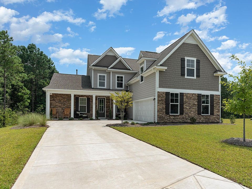Welcome to this beautiful two story home on the cul-de-sac with 5 bedrooms and 3.5 bath in the gated community of Brighton Lakes. Home has Hardie board siding, stacked stone accents, inviting front porch and a screen porch overlooking the private fenced in back yard! Laminate wood floors flowing into the dining room, kitchen, and living space. Laundry room and oversized owners' bedroom suite is conveniently located on the first floor and has a HUGE walk-in closet and bathroom with double vanity, tiled 5' shower and garden tub. Lovely formal dining room and kitchen with 36"" staggered cabinetry, stainless steel appliances, quartz countertops and tiled backsplash. Upstairs boasts 4 additional bedrooms, two full baths. This luxurious community includes an array of oversized homesites along with a gated entrance and large community center. Brighton Lakes Community has a large community pool, a playground and a fitness center. You will be located within a very short drive to tons of shopping, restaurants, grocery stores, the Myrtle Beach International Airport, and best of all approximately 15-20 minutes to the best beaches that Myrtle Beach has to offer. All square footage is approximate and is not guaranteed. Buyer is responsible for verification.
