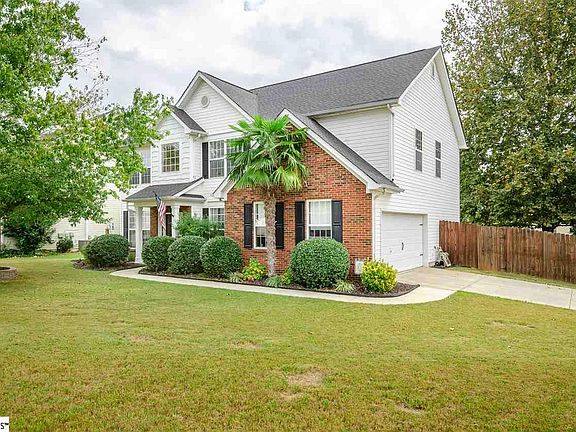 Welcome home to Summerfield, one of Greenville's most desirable communities. You will be welcomed by a professionally landscaped front yard, complete with landscape lighting, fragrant gardenias, lilies, manicured holly bushes, and a well-established palm tree. You will love the open floor plan as you are greeted by the two-story foyer and beautiful new wide plank, hand scraped, 50-year solid bamboo flooring. The main level offers a dining room, living room, den, half bathroom, a flex room with gorgeous double doors, and an enormous kitchen. The flex room could serve as a fifth bedroom, music room, office, or playroom. The front rooms and renovated half bath feature beautiful wide crown molding. Subtle carvings adorn the family room wood burning fireplace with gas start that could easily be converted to all gas. From the kitchen, is an entryway to the huge 2 car side entry garage with plenty of shelving for storage. Upstairs you will find a spacious master suite with high vaulted ceiling and sitting area. The master bath features dual vanity areas, a large garden tub, separate shower and a large walk-in closet. There are 3 secondary bedrooms which showcase plush carpeting and spacious closets. You will also find a full bathroom on the second level. There's a large walk-in laundry room on the second level making the laundry chore a breeze. This home has plenty of space for the whole family and tons of upgrades throughout including a fully renovated half bath with gorgeous custom-designed hex tile flooring, wainscoting, and a vintage solid hardwood door. The kitchen features new wide plank hickory laminate flooring, new stainless-steel appliances (including a double oven with convection), and a custom island with granite top. Most faucets have been tastefully upgraded and the home includes all new high quality light fixtures throughout. This home also features 2" custom plantation blinds in most of the windows. The new downstairs 5" wood baseboards and fluted door casing details complete with bullseye rosettes make this home feel extra luxurious. All of the downstairs interior doors and knobs have been upgraded and even include some antique style glass knobs and hardware. Most of the interior has been freshly painted in designer high quality paint colors. All of these custom features plus a new roof in November 2018, new complete upstairs HVAC system in May 2019, and new hot water heater in November 2016, make this house turnkey ready. The home also comes with a complimentary 1-year home warranty for added reassurance. Outdoor living is second to none at this home as you enter the huge backyard through the beautiful new patio door which offers plenty of light into the kitchen. Enjoy the privacy of a fully fenced yard & canopy covered patio with plenty of shade on those hot summer days from an established American Sycamore tree. There is a large playset for the kids to enjoy. The backyard also has 2 established butterfly garden boxes, a butterfly bush, window garden boxes, rose bushes, 2 manicured crepe myrtles, and a lovely arbor. A privacy row of disease resistant, fast growing abbreviates has also been started along the back fence. There are 2 resident hummingbirds with finches, doves, cardinals, and blue birds that visit regularly. A small shed is also included for outdoor storage. Imagine owning your own special outdoor retreat of a yard while grilling out with friends and family. This neighborhood is also abundant with sidewalks and the home is located just a short walk from the pool or playground. This neighborhood also has an active social committee which offers many community events throughout the year for everyone. The neighborhood is zoned for Palmetto's Finest: Bethel Elementary, Mauldin Middle and Mauldin HS. Convenient to shopping, restaurants, Five Forks, Woodruff Rd, Downtown Greenville, & 385. This home really has it all. You won't want to miss this opportunity to own this clean, well maintained home.