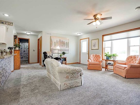 The spacious corner lot sits at the edge of town with sprawling open fields in the backyard. This immaculately maintained ranch is move in ready and boasts open concept kitchen, dining and living room. The 4 car heated garage features an epoxy floor, and a vast array of storage or entertainment space. If that's not enough, there's a storage shed out back! The home is inviting and leaves nothing untouched. The windows, flooring and roof have all been replaced. Enjoy quiet nights on the covered deck out back this fall overlooking farm ground to the west. The basement is open and could allow for a 4th bedroom (just add a wall) and a great living room/family room. Don't miss this wonderful home, you won't find a better cared for property than this one! Schedule your showing today!