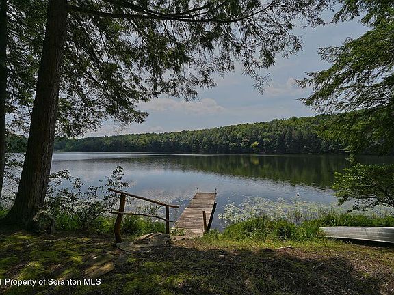 Idyllic lakefront cottage on pristine Stearns Lake, just 10 minutes from Elk Mountain Ski Area. This charming cottage is nestled on 0.34 acre wooded lot. 132 feet of lake frontage is yours to enjoy. Adirondack feel with mature hemlocks that shade the cottage. Your view across the lake is all trees, only 18 cottages on the entire lake. This gorgeous mountain lake is spring fed and 44' depth. No motors allowed so you can quietly kayak, fish, and swim. The cottage has pine tongue-n-groove paneling, 3/4 bath, living area & eat-in kitchen on the first floor. The second floor has a large dormer to frame the lake view, and offers three sleeping areas. Separate bedrooms could easily be created with installation of a couple interior walls. 1000 gallon concrete septic with drain field. Lake water is pumped into house for domestic use- there is not a drilled well. Heat is provided by a large wood stove. Furnishings are included. Exterior stain applied about 3 years ago. French drain around the cottage perimeter. Deeded lake rights- no association dues. Located along a private lane with just a few other homes.