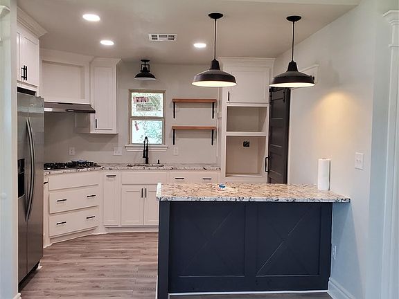 Cutest house ever!!!! This 3 bedroom, 1 bath home is so cute. All new kitchen cabinets with stainless steel appliances. The owner has installed soft close cabinet drawers. All new click lock vinyl flooring throughout the home. Gorgeous electric fireplace. It has a very charming covered front porch and a lovely patio. Call Sue @ 580-512-1942 or Century 21 @ 580-454-0025 for more information.