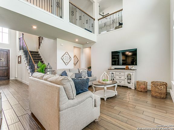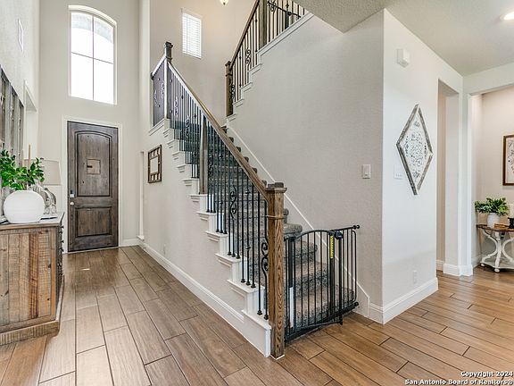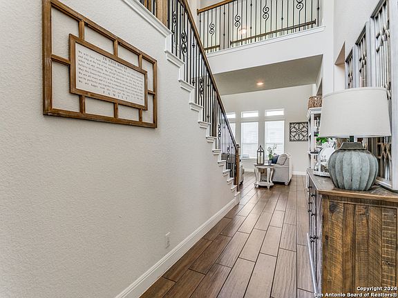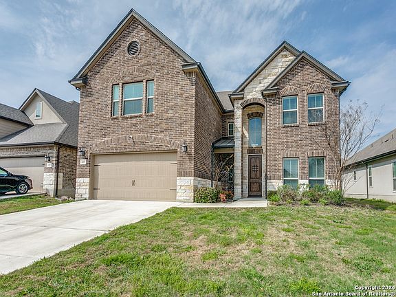 Spectacular 5-Bed, 3.5 bathroom home*The immaculate open floor plan seamlessly blends the family room, dining area and kitchen into a delightful entertaining space*the kitchen boast sprawling counter space, custom cabinets, top of the line appliances and sleek granite countertops* Wood look tile through out the main living spaces including the primary bedroom* The downstairs primary suite offers a sanctuary of tranquility, featuring a luxurious ensuite bathroom with a soothing soaking tub, spacious walk-in closet and ample natural light*Upstairs are 4 oversized bedrooms, game room and 2 bathrooms*In sought after Schertz-Cibolo-UC ISD and 6 miles to Randolph, quick access to IH35 and shopping.