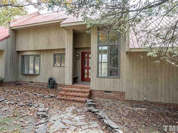 PRICE REDUCED!! Fantastic Contemporary Home with Character in Chapel Hill! Jordan Lake View in Winter! Custom Built Cedar Home w/Metal Roof by Mark Hance. Floor to Ceiling Windows! Granite Counters in Kitchen & Baths!Master bath with a "splash" of updates! Refinished Hardwood Floors in Kitchen & Living area! New Carpet! Cozy Double-sided Gas Log Fireplace! Enjoy Each Season from the Screen Porch & Deck! Great Loft! Built-ins along 20ft Wall in Loft! Walk in storage on second floor.