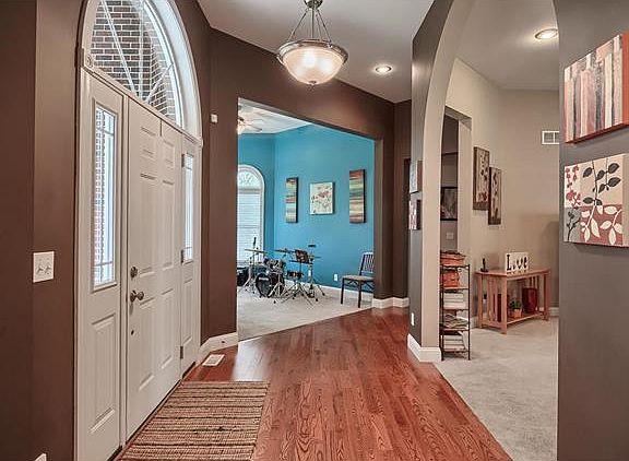 Stunning custom built brick ranch home on under 3+\- acres in sought after Country Oaks! This home offers soaring 12 ft ceilings in the great room, foyer, den, and formal dining room! The remainder of the home offers 9ft ceilings including the basement! Divided floor plan offer the master suite with large double walk-in closets, corner garden tub, separate shower, and a 9ft double vanity! There are multiple bay windows throughout this home which allows for a ton of natural light! The rear of this home offers a 27X14 maintenance free covered deck perfect for outdoor entertaining! Entering from the garage you will come into a utility area and then a separate entrance into the over-sized laundry room! The kitchen offers staggered maple cabinets, center island, black appliances, walk-in pantry, and more! The walk-out lower level offers a small office, bedroom, and full bathroom! Andersen Windows! Geothermal HVAC! 400 amp service! Irrigation System! Great cul-de-sac location!