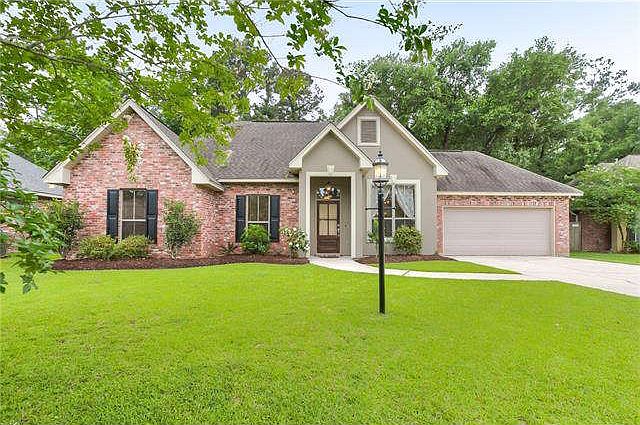 Beautiful & freshly painted. This move-in ready 4 bedroom/ 2 bath home sits on a quiet cul-de-sac and has it all! Exceptional features include all wood floors & tile (no carpet), granite countertops, formal dining room, 2 car garage, fireplace, community pool & lake. Master suite has separate walkin closets and Jacuzzi tub. Relax on the covered patio and enjoy the fenced yard that backs to greenspace. High & dry in Flood Zone C. Mandeville school district.