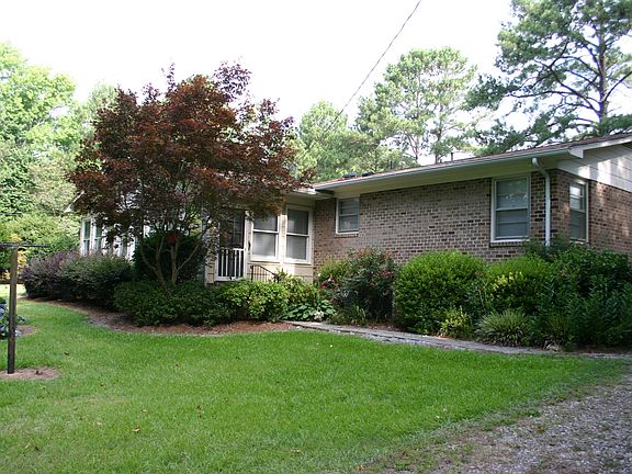 A classic from the 70's! A lovely brick ranch built and lived in by the original owners and family members since 1973! This home sets on almost an acre with beautiful landscaping and wired out buildings including a detached office. Well-maintained with loving care through the years, new cabinets and flooring in the kitchen and nook areas have recently been added. It sets on a corner lot within the city limits of a growing community which has retained its small-town charm, allowing the owners easy travel to the downtown area (via golf cart if you choose) as well as easy access to the 5-County Region and the Triangle. This home also boasts a separate apartment for in-laws or even a teenager seeking grown-up privacy! Great neighborhood! You must see it to believe it!