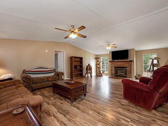 Beautiful property sits a Doubled wide mobile home with brick foundation. Located on over 5 acres! 3 bedrooms and 2 baths with newer laminate flooring throughout the home. Large spacious kitchen with lots of cabinets and an island. Double sink vanity in master bath. Home also has room for horses or other animals you may want. Carport and shed on property as well. A MUST SEE!!!!!